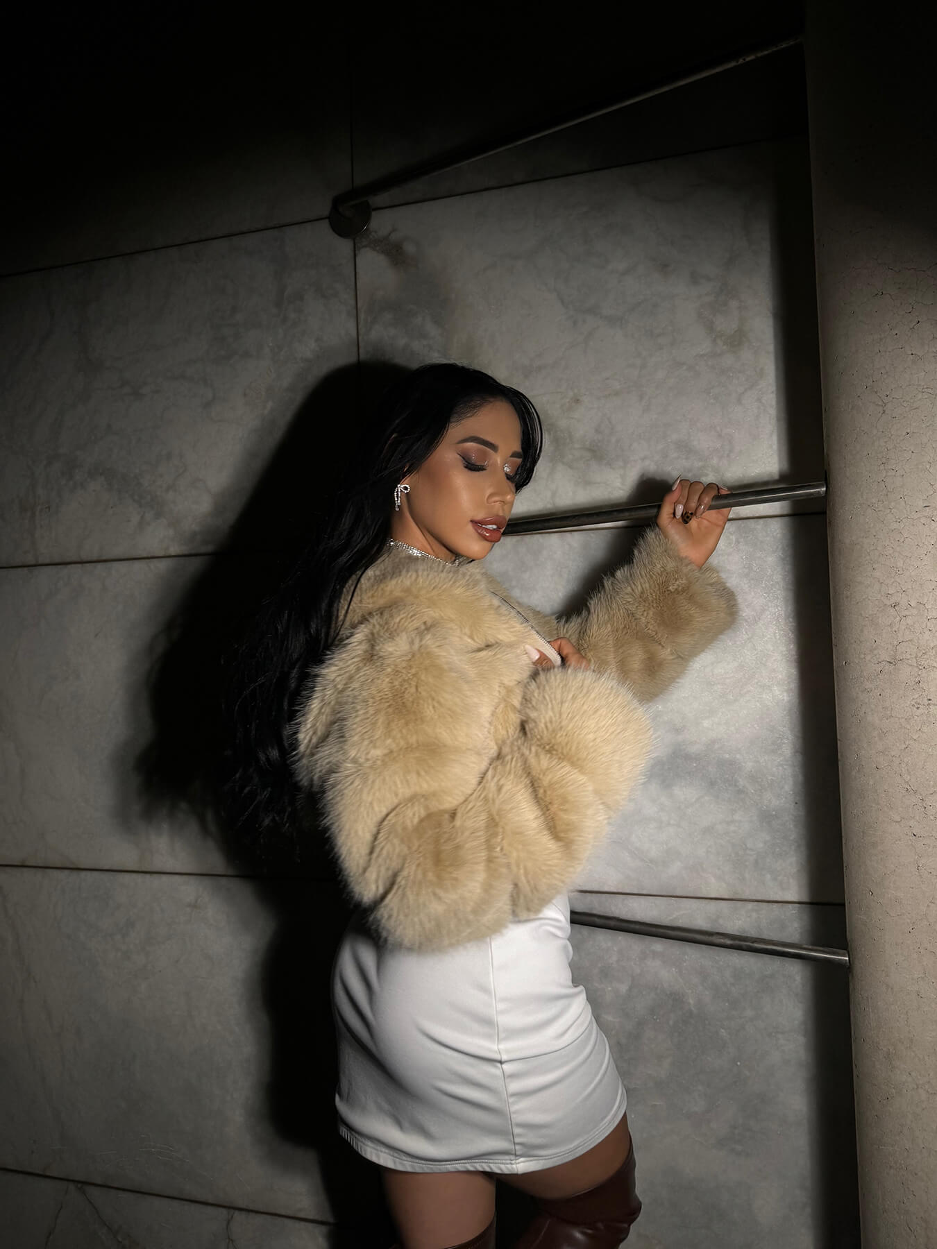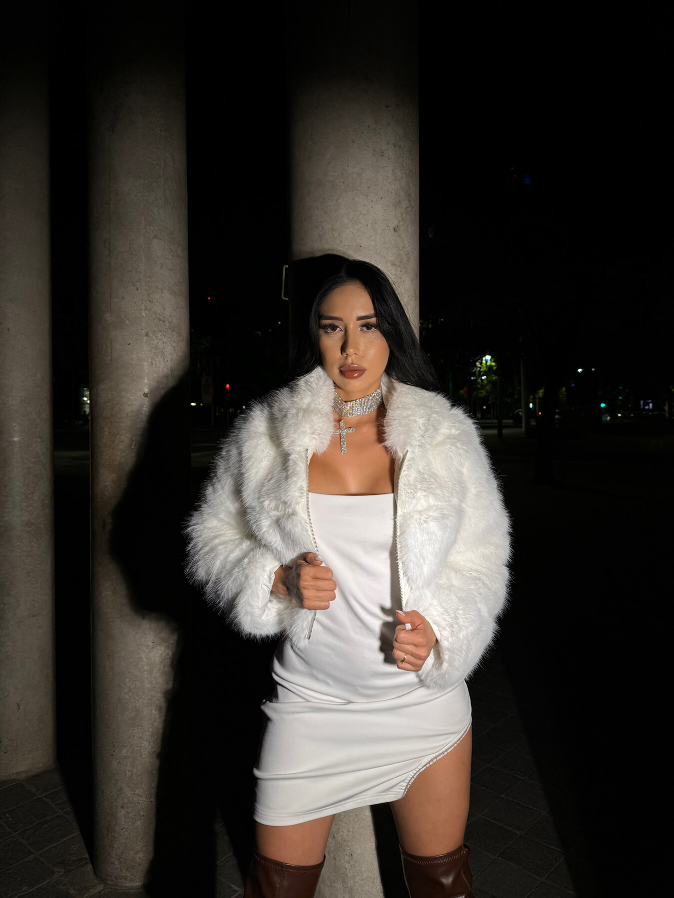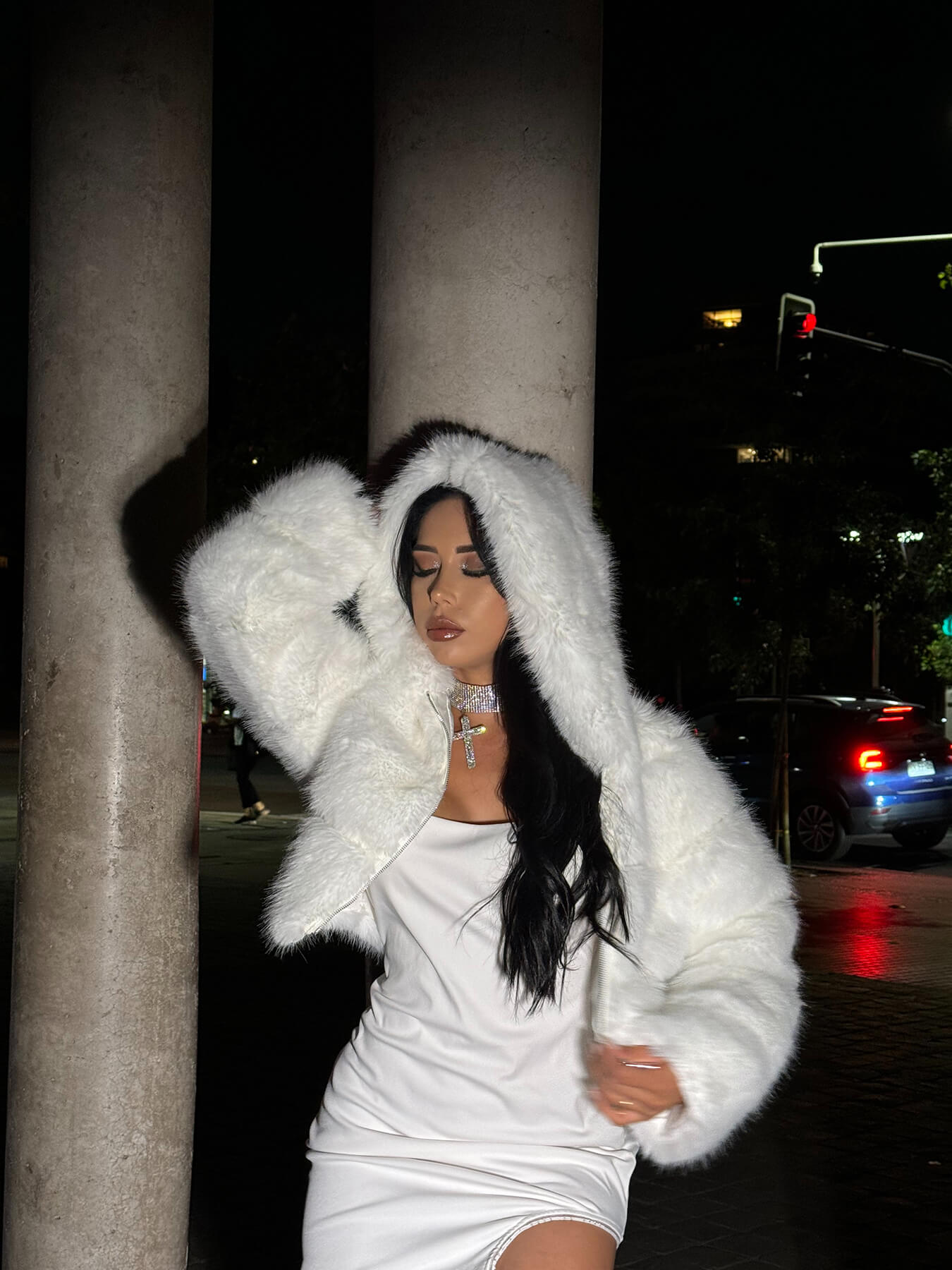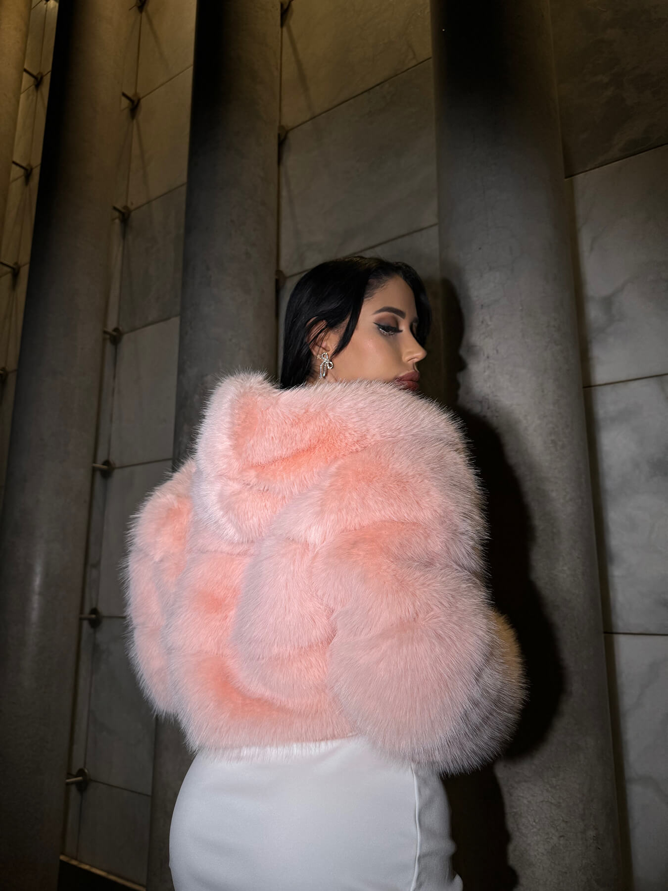Chaqueta peluda con gorro